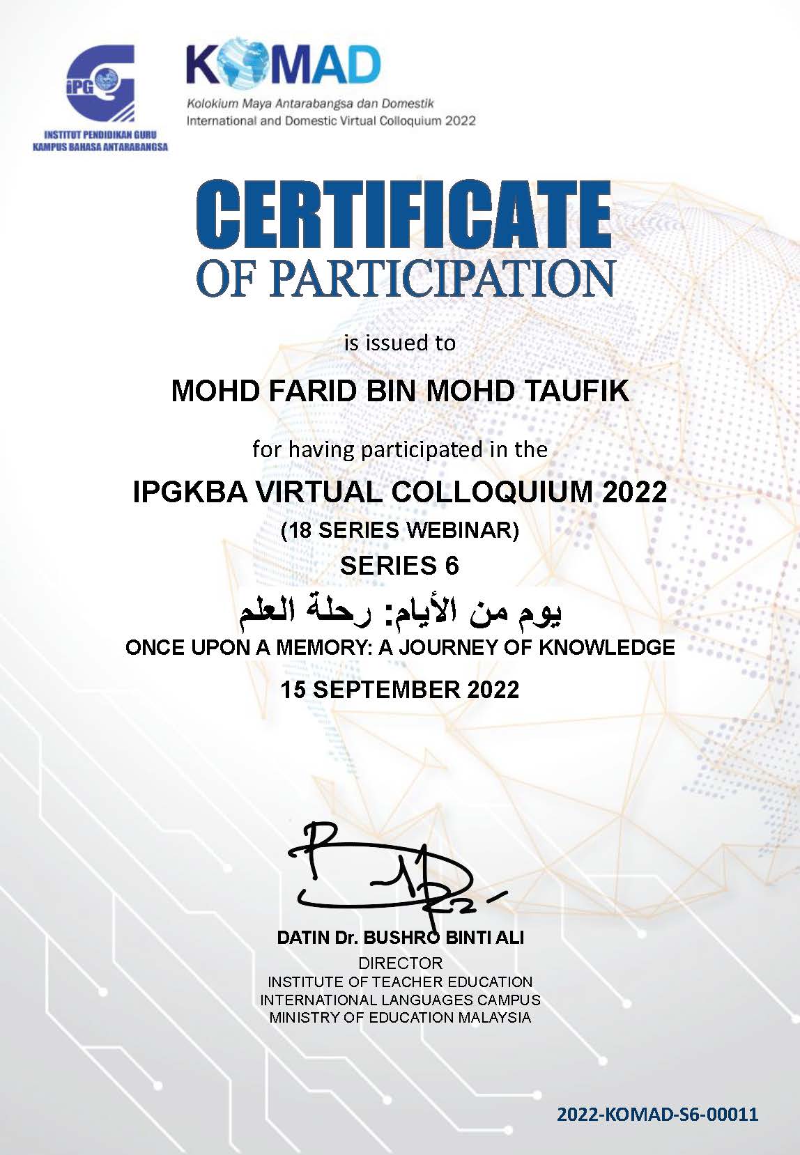 CVT Mohd Farid Collection Of Certificate